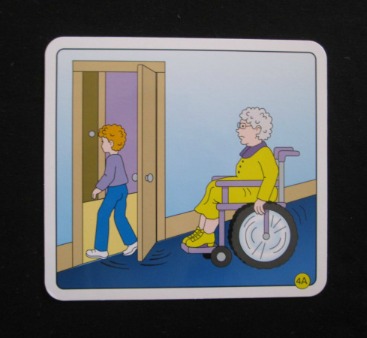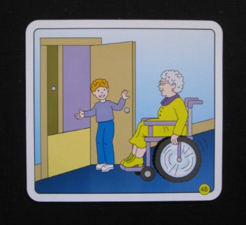 One way to do this would be to talk about manners when they come up. For instance, suppose I want my son to hold the door open for his grandmother when we're visiting her at the retirement center. I can remind him of the manners card appropriate for this situation as shown below.